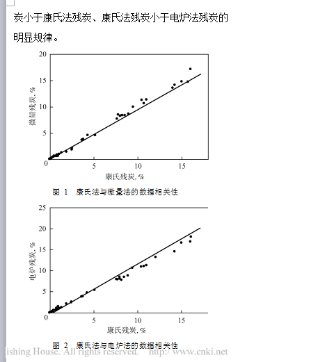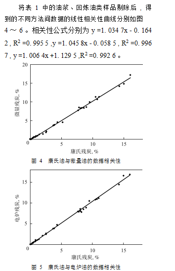 前述的實驗結果說明 ,用三種不同方法測定不同類型的油樣時 ,所得殘炭數據間的相關性有好有